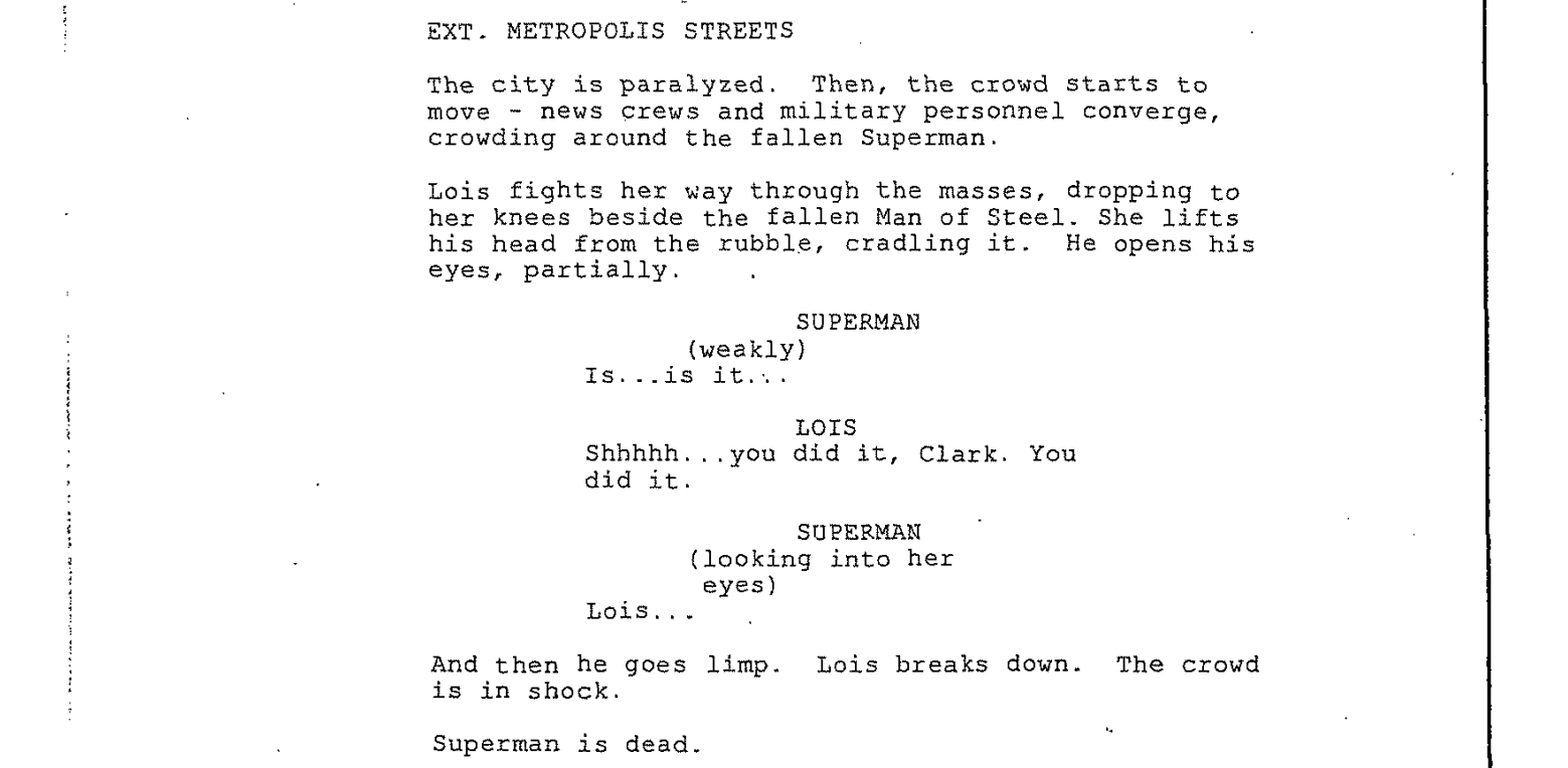 I’ve compiled 10 unproduced superhero screenplays for your reading pleasure. Some good, some middling, some downright weird. Even if you’re just browsing, the bombastic title pages alone are worth a look – some feel like picking up your favorite hero’s comic after finishing homework on a school night. Can’t get enough? Support your local comic shop. Who knows, ink and paper might inspire your own superpowered epic.