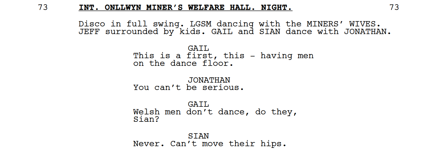 We’ve got a fascinating opportunity here to investigate another Wales-centric screenplay; Pride is the inverse of The Iron Lady, showing the other side of Thatcher’s union-busting from the perspective of the downtrodden.