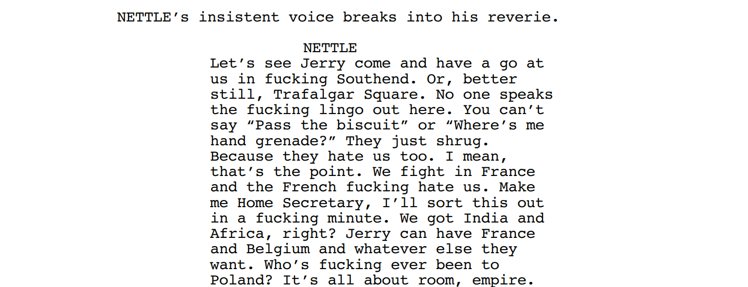 You’ve probably heard that art imitates life, and this seems especially pertinent for British filmmaking. I’ve noted that these screenplays can, by and large, be broken into two eras. From 1939 to 1980, we were focused heavily on World War II, obviously a major, defining influence on British art and identity. After 1980, there was a shift toward fear of fascism, sparked by the Thatcher era. Autocracy and dystopia became common themes, succeeding the WWII focus.