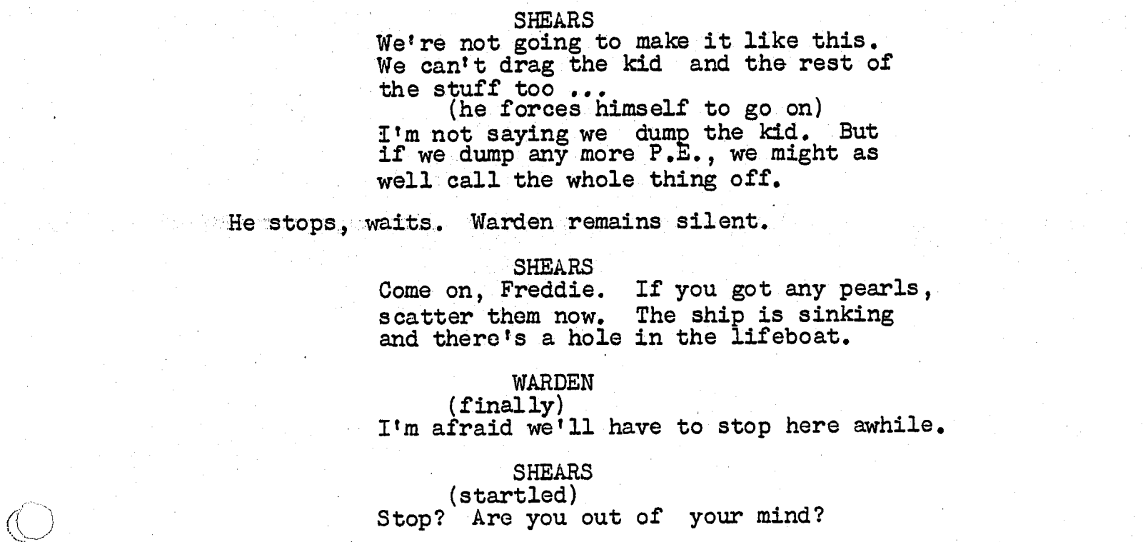 What I love most about the screenplay is its slow-building, almost suffocating urgency. Even during long stretches – treks through the jungle, meticulous bridge construction, philosophical back-and-forths – time marches forward, unyielding. It’s also worth noting the available screenplay is an early draft, diverging more from Boulle’s novel than the final film, with scenes that were never shot or ended up on the cutting room floor.