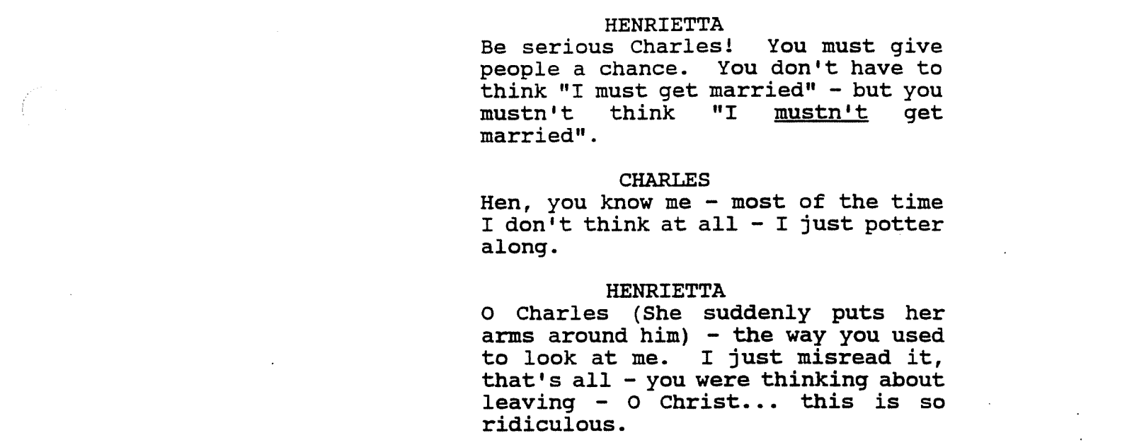 Not my favorite screenplay, but I thought it was a worthwhile inclusion; the film gained recognition for its genre-bending dark humor, and post-modern examination of British class disparity. It’s included because it shows that not all British film is contemplative, the nation is producing edgier, controversial screenplays with complex characters and biting satire.
