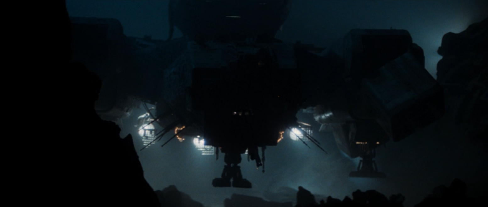 The crew approaches the giant round vessel. Kane belays into the cavernous interior, venturing deep into uncharted territory. Back on the Nostromo, Ripley uses Mother to decode the transmission.