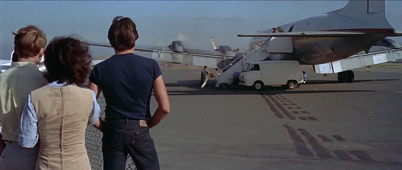 The next morning, we find our cast of characters at an airport, all saying their goodbyes to Curt. It’s clear that he and Steve have switched positions, with Curt now being the one to go to college, while Steve stays back in town with his once-again girlfriend, Laurie.