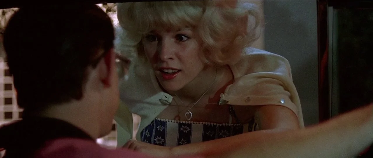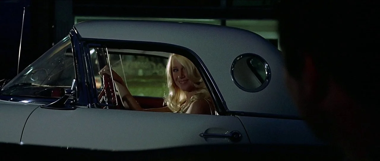 As Steve and Curt drive over to the freshman dance, a girl in the car next to them tries to say something to Curt. She’s beautiful and Curt’s mesmerized, but he can’t hear what she's saying.