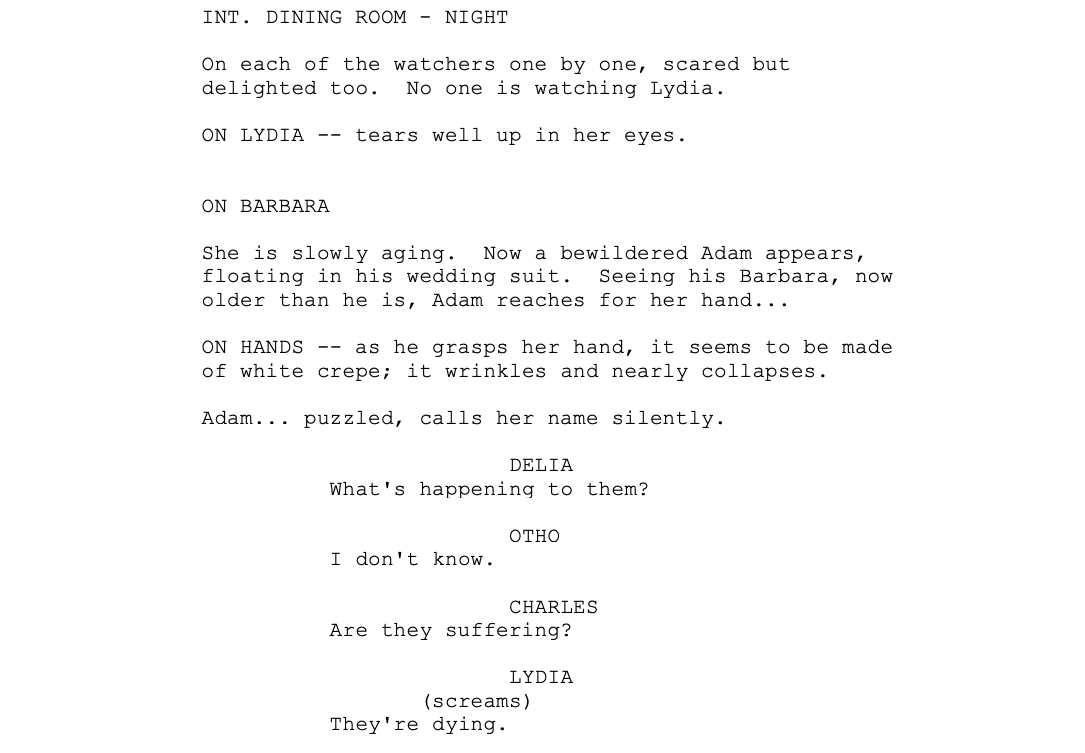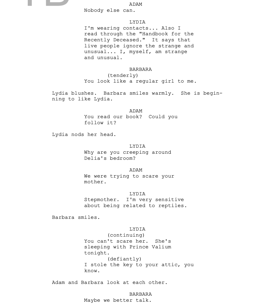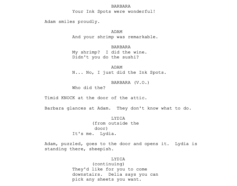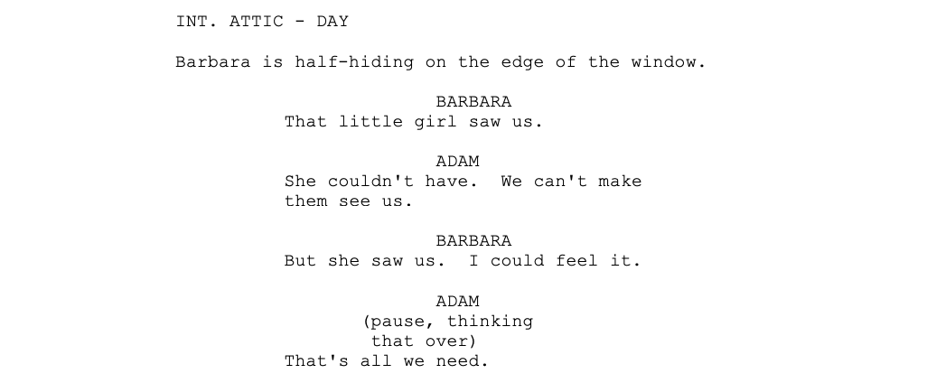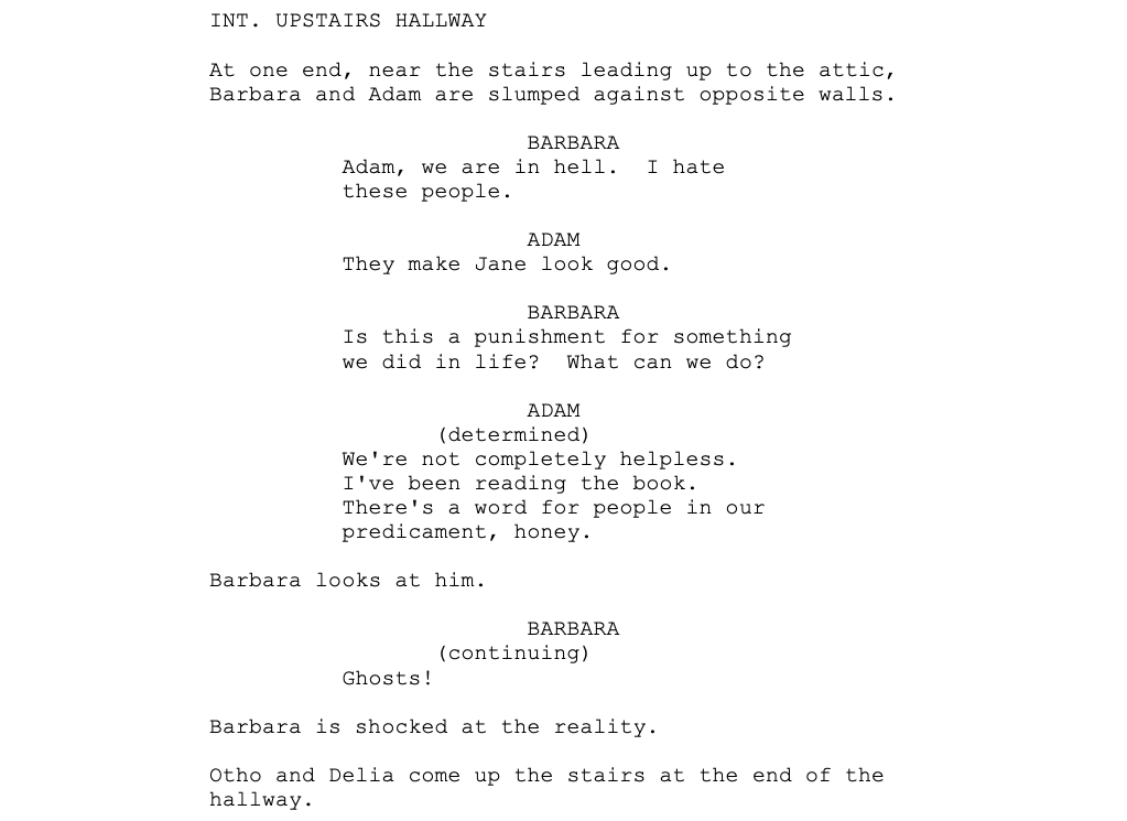 Just when Adam and Barbara are starting to get elated over the “success” of their haunting, Lydia comes up to the attic to deliver some unfortunate news.