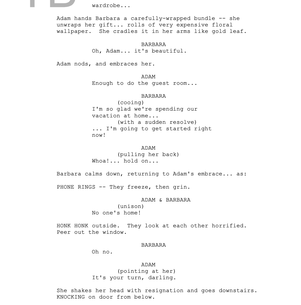Suddenly, the TV in the attic flickers on, and it starts playing the strangest commercial Adam or Barbara has ever seen in their lives.