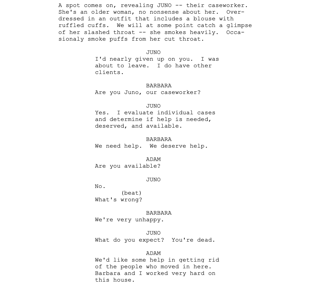The receptionist tells them they’re going to have to wait to see their caseworker, Juno, so they take a seat in the waiting room, which is filled with dozens of other recently deceased people.
