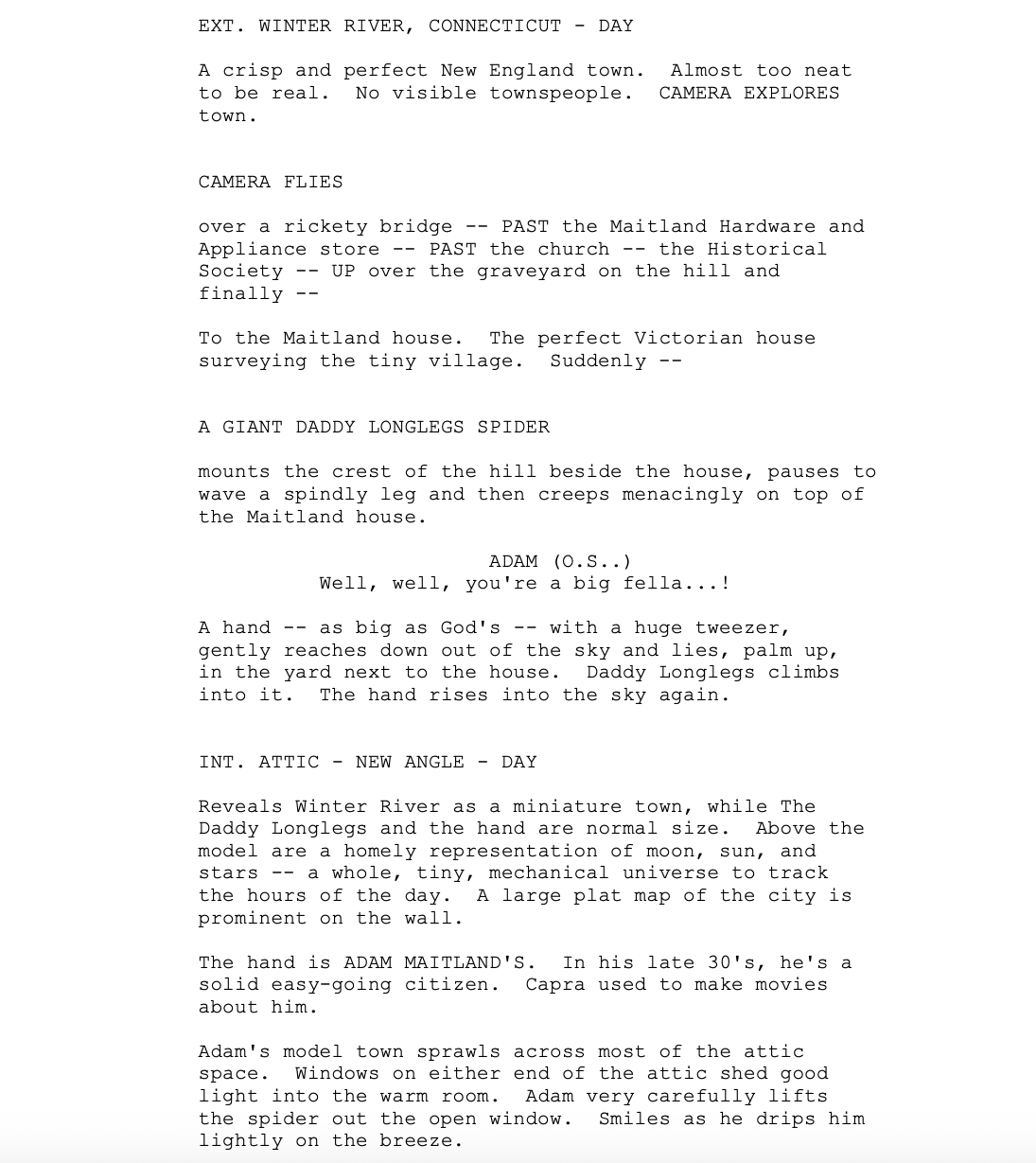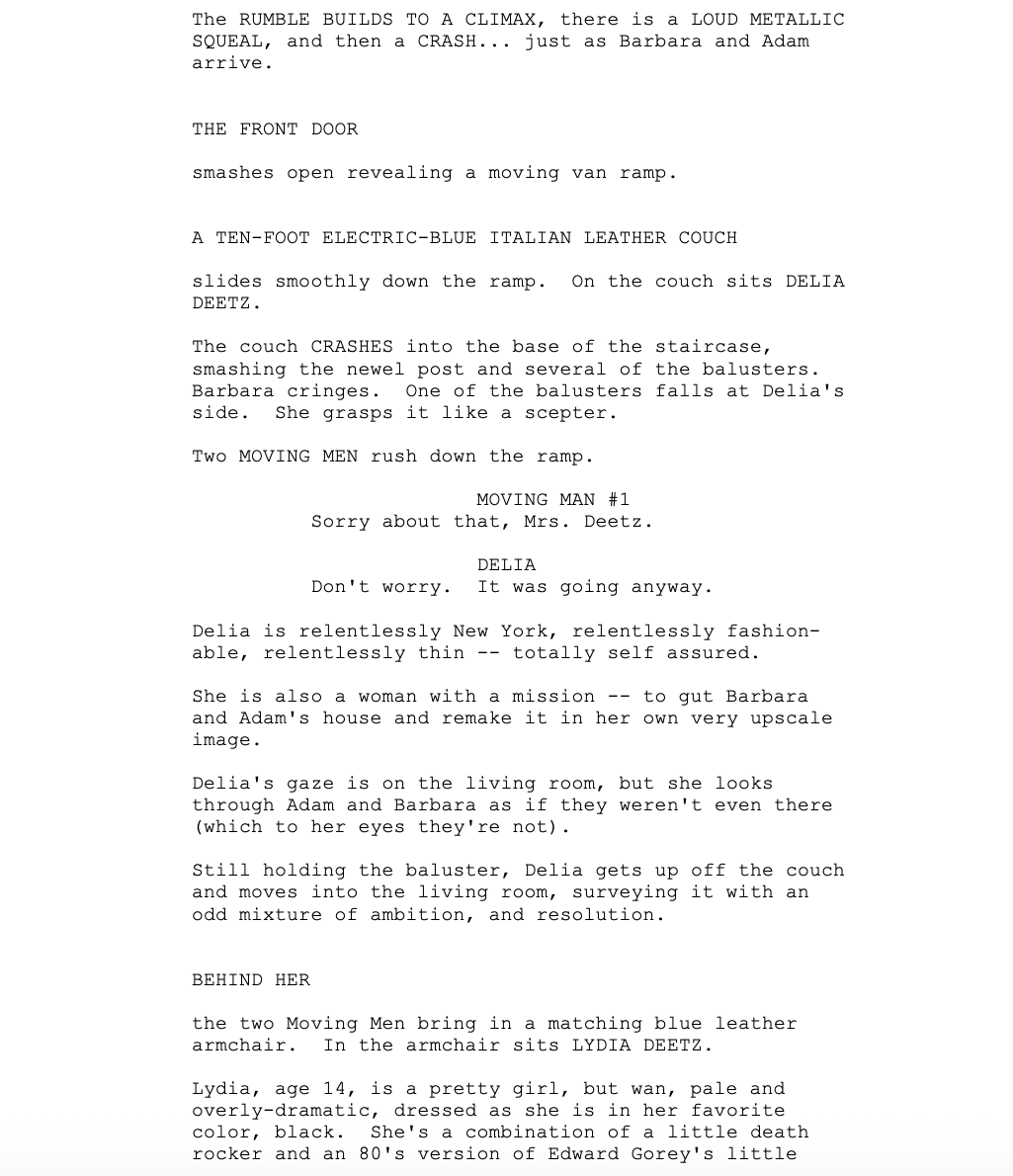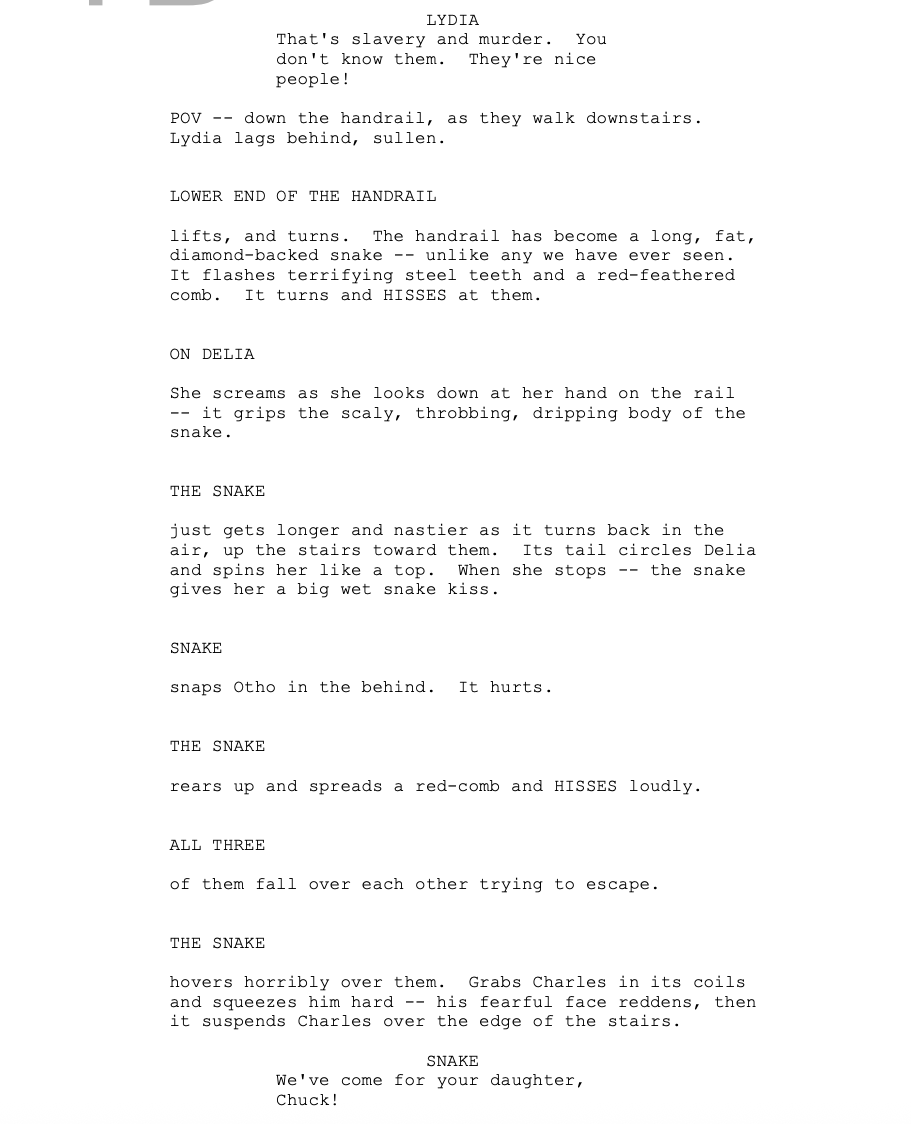 Also, it should be noted that there were MANY changes made between the writing of this script and the final film, so I’ll make sure to point those out to you whenever they appear (HINT: The original script was much darker and stranger).