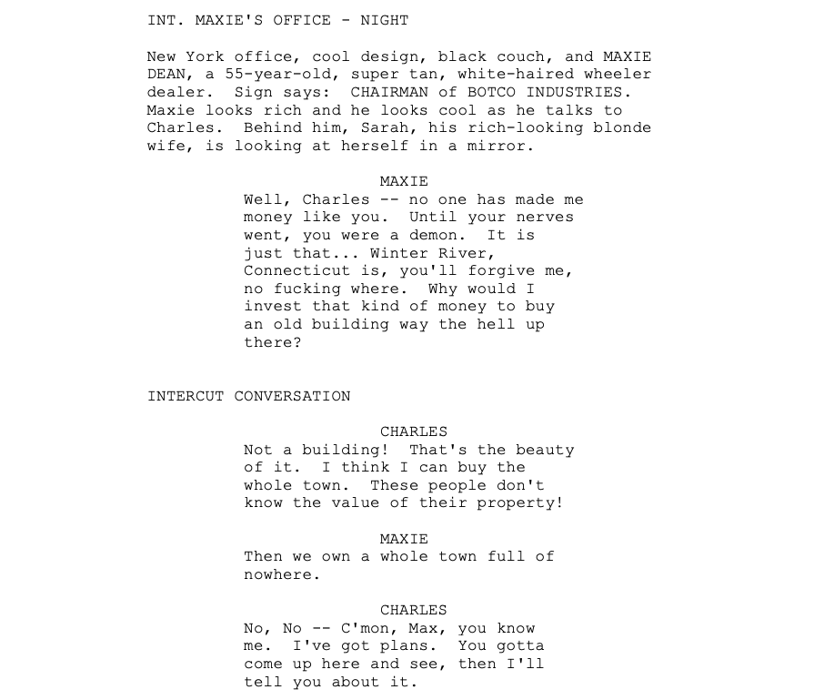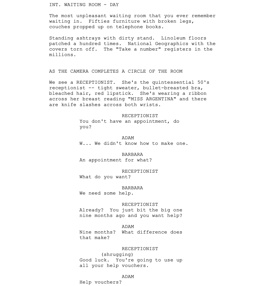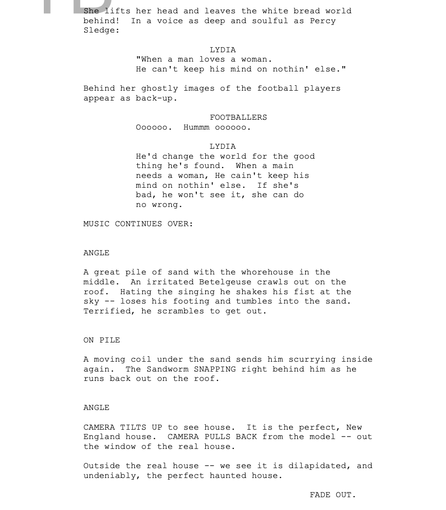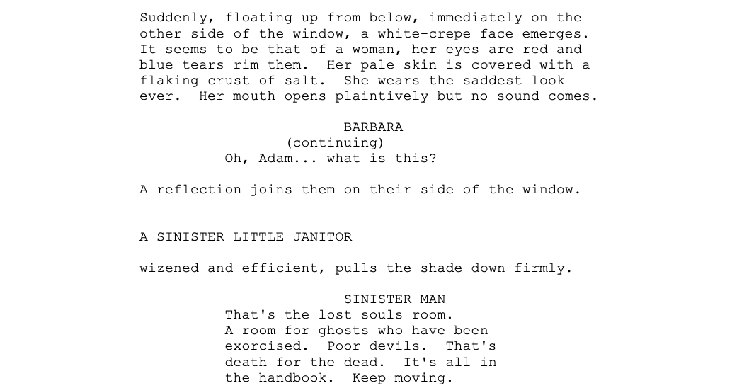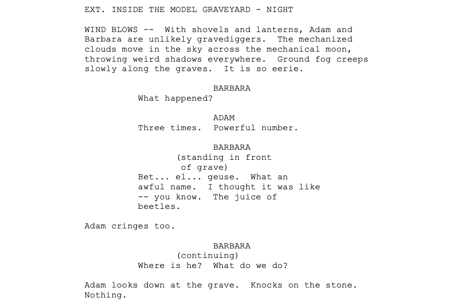 Also, it should be noted that there were MANY changes made between the writing of this script and the final film, so I’ll make sure to point those out to you whenever they appear (HINT: The original script was much darker and stranger).