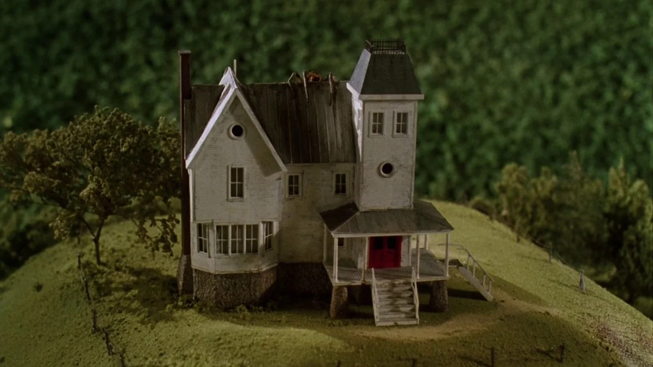 The film opens with a continuous POV shot as the camera explores a stereotypical, quiet New England town. As you look closer, you begin to notice that there aren’t any people here, and that all of the buildings and grass look a bit…plastic. We stop at a gorgeous Victorian house on the edge of the town, when suddenly, a large spider crawls into frame. We quickly realize that we weren’t exploring the town at all–it was a model. And just like that, the writers of this film let it be clear that this is their world that they’ve created, and you have no idea what’s coming next.
