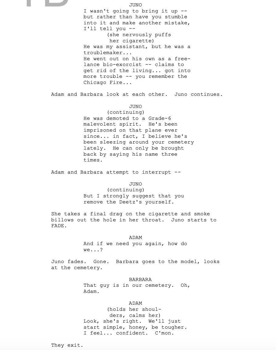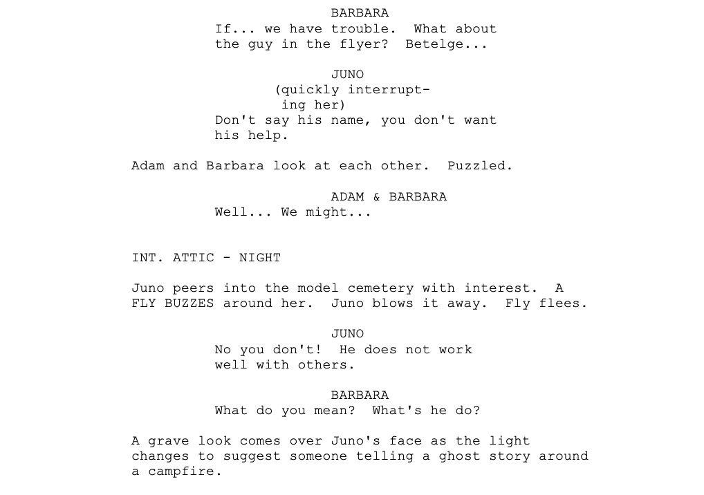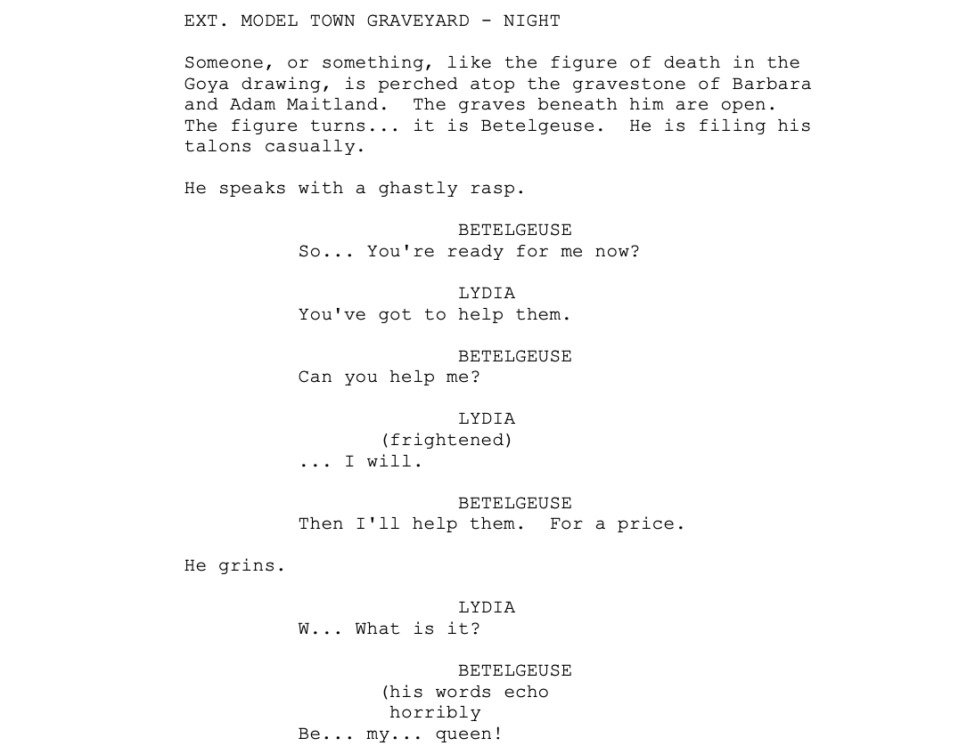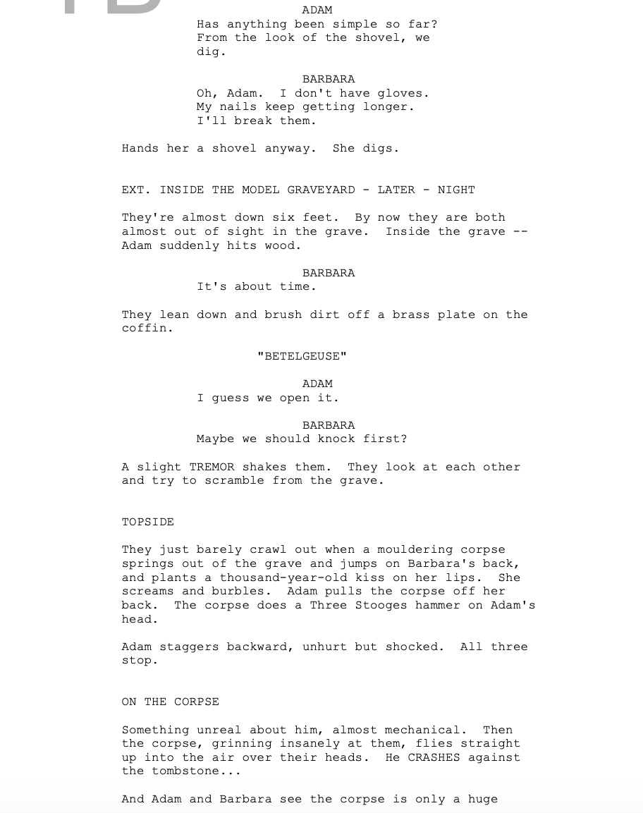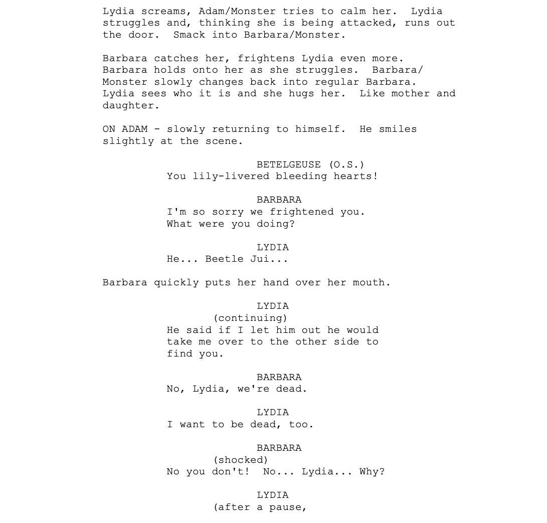 Act 2 begins with Adam and Barbara, who had just had the strangest introduction to Beetlejuice, finally discovering some sort of answer in the book.