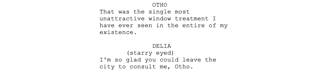 And to make things worse, Delia’s brought along Otho, her chubby, gay New York bestie, to help with the “much-needed” redecorating.