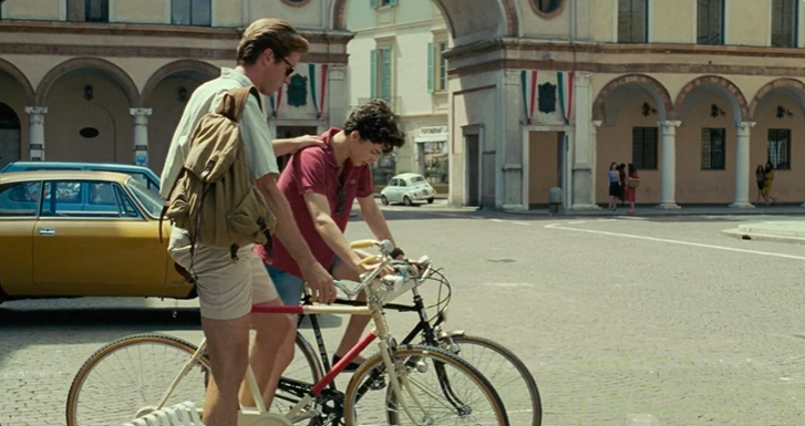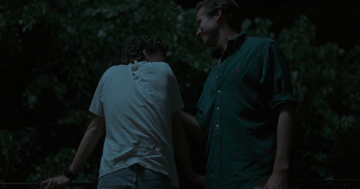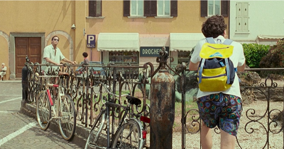 Just as Elio seems to be speaking comfortably with Oliver, something throws him off-kilter and reignites the tension he feels; physical contact. These small moments of physical contact are pivotal to Elio’s realizations about his feelings and sexuality, but it’s initially unclear if they mean anything to Oliver. The audience feels just as curious as Elio, wondering what’s a hint and what means nothing. Elio is on the backfoot throughout the first act, trying to get a read both on his new guest and on himself. This simple grab on the shoulder, though, is what I’d consider the meet-cute; it lights the spark in Elio that continues to burn throughout the film.
