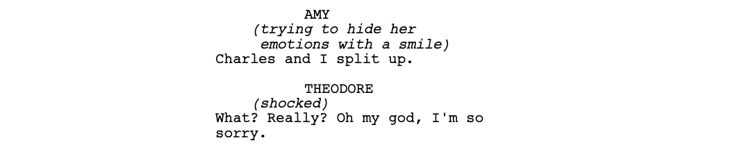 The email from Amy, along with Theodore’s music request, tells us that he’s clearly depressed, but it hasn’t always been this way. Something must have happened to him, and he still hasn’t recovered.