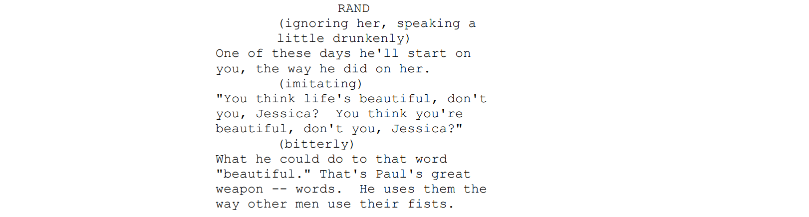 Its spareness is striking and defies a bold break from the sensationalism of its era. Rather than, for instance, treating the practice of voodoo as barbaric, exotic, or inherently evil, it presents the practice with a surprising integrity and respect. This restraint showed future generations that suggestion can be more terrifying than spectacle. The script also introduced folklore and ritual as narrative texture, not mere exotic flourish but vital forces driving character and conflict – a hallmark apparent in many screenplays on this list.
