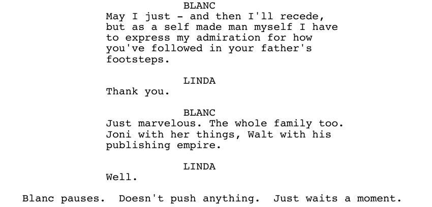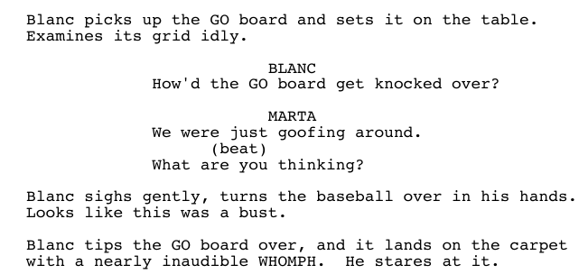 I’m thrilled that Knives Out spawned a franchise, with Glass Onion also being rife with fun script details to dig through (maybe another time). Wake Up, Dead Man is just around the corner this year, and I know that I’ll be tuning in to find out what case Benoit Blanc tackles next. His first outing remains one of my favorite films of the 2010s, and, I hope, a great example of screenwriting for all of us.
