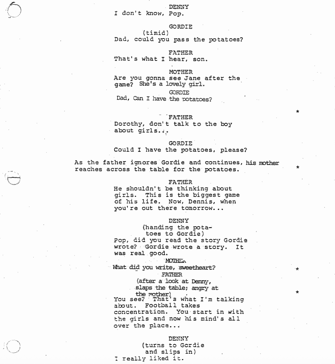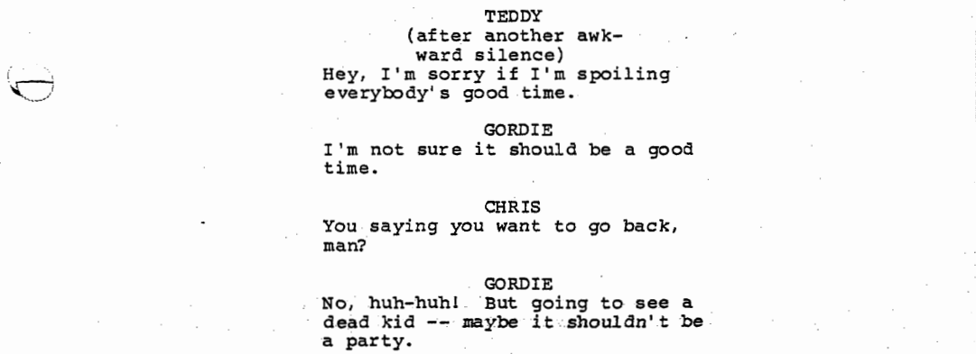 It becomes clear that Gordie’s parents only really cared about Denny and have very little approval for Gordie’s friends, his interests, or even him as a person. Thank God he has his friends.