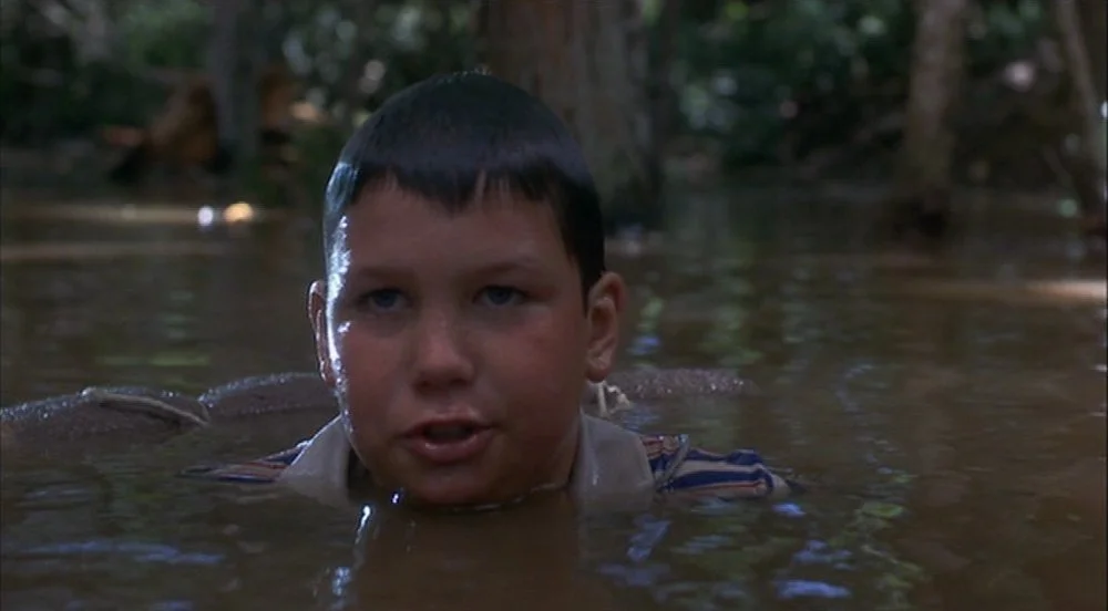 After clearing off the leeches from their bodies, Gordie looks down into his underwear and discovers one more in the absolute worst of places, causing him to faint.