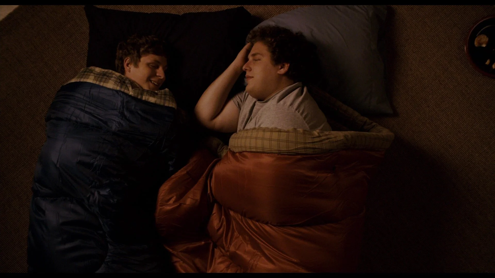 Meanwhile, Evan and Seth go back home and have a sleepover in Evan’s basement. Finally, they’re able to talk through all their shit.