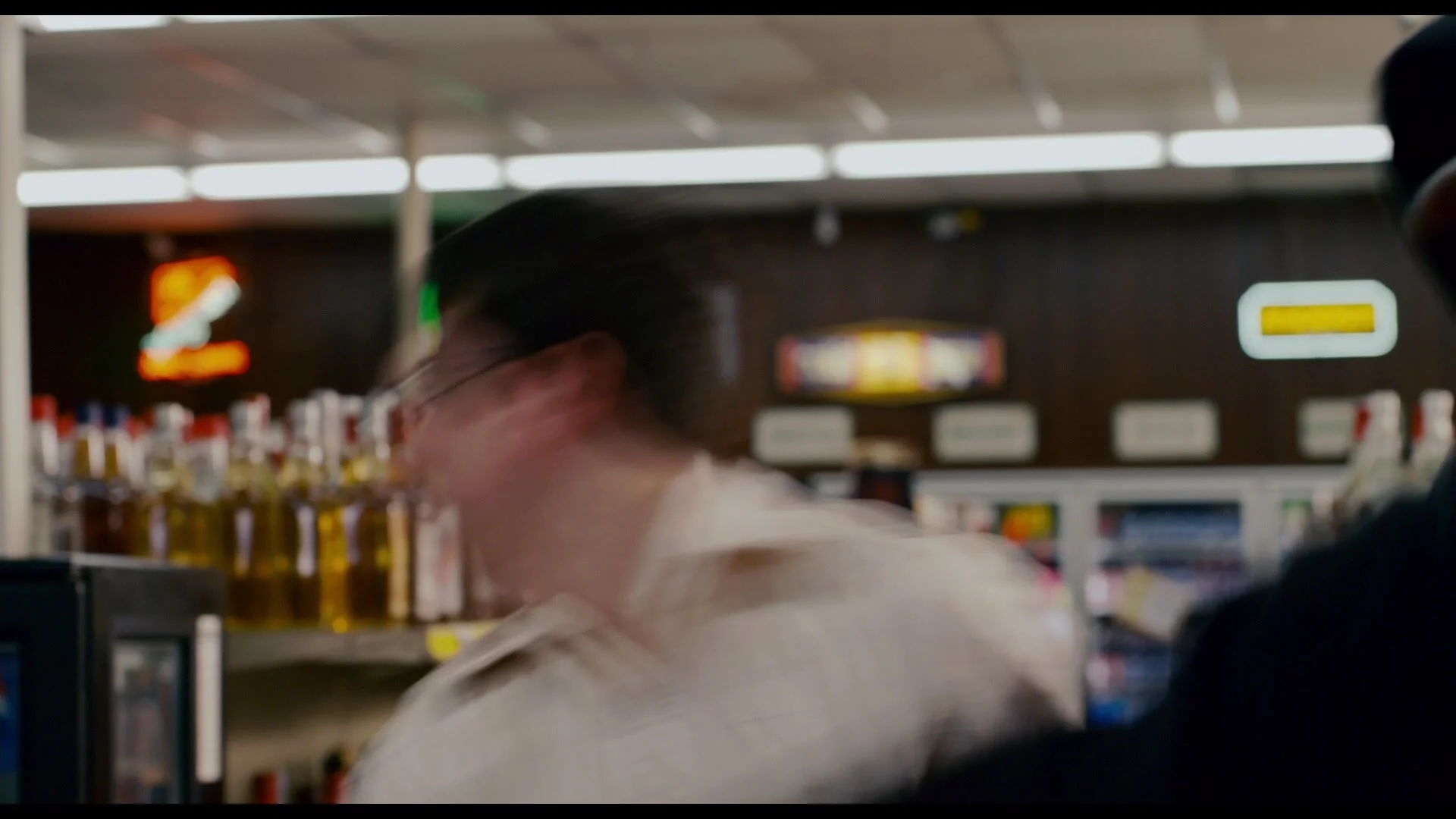 Back inside the store, Fogell’s surprised to see that his fake ID actually worked. The cashier starts to bag up his alcohol when…
