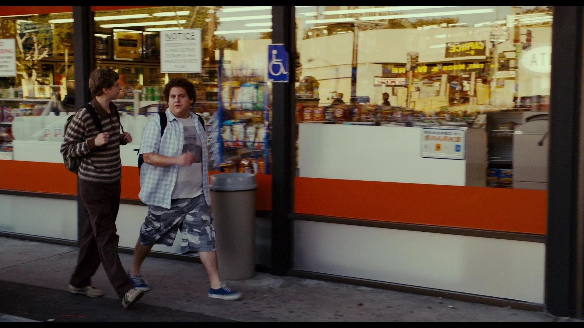 On the route to school, the two boys stop at a 7/11 to grab some snacks, where they ponder over the reasons why neither of them has gotten laid (and whether or not they’ll have the chance to before college).