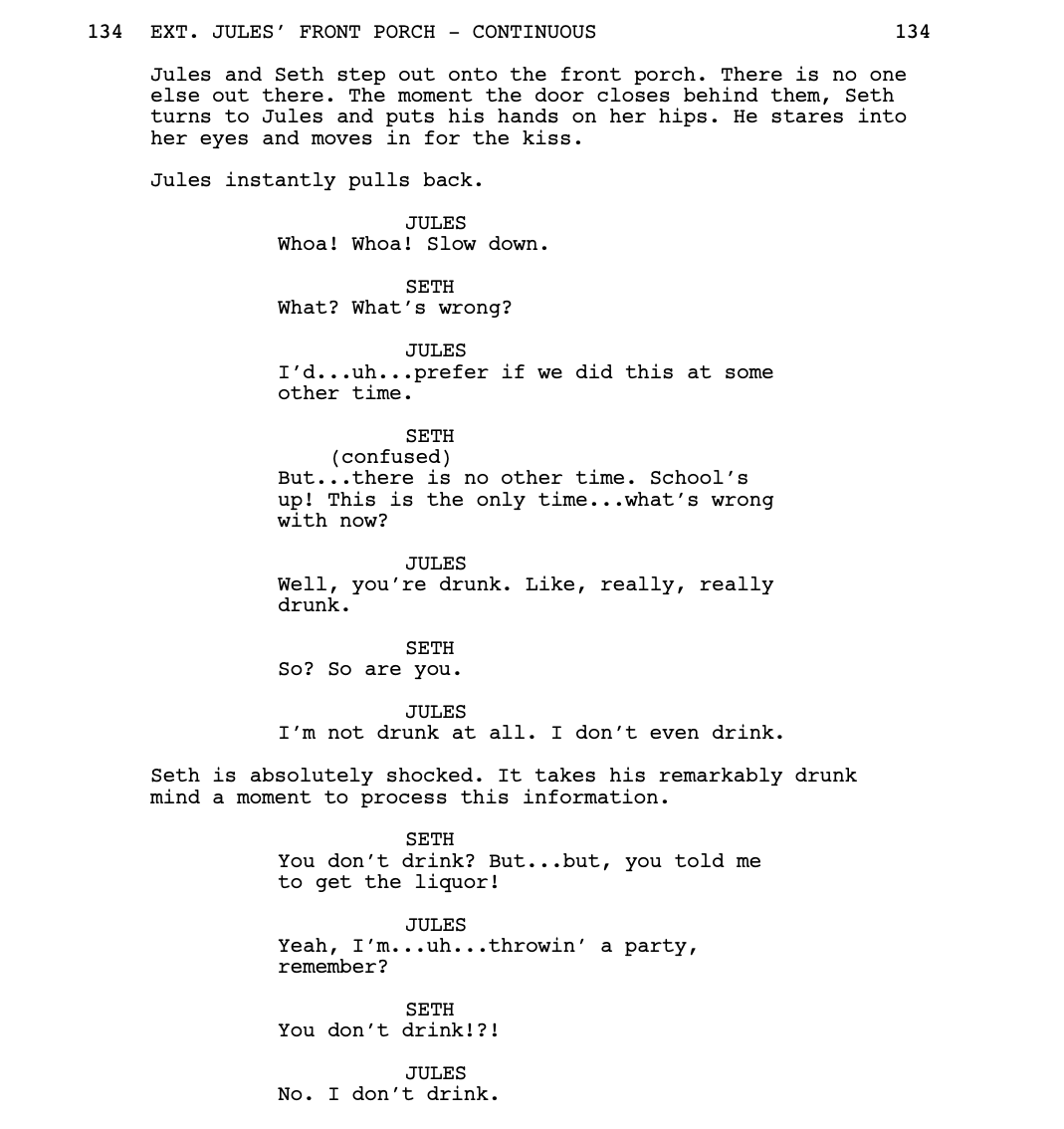 Okay, back to the movie. The ultimate finale to their high school careers is set, but when Jules talks to Seth after class, the stakes are suddenly raised.