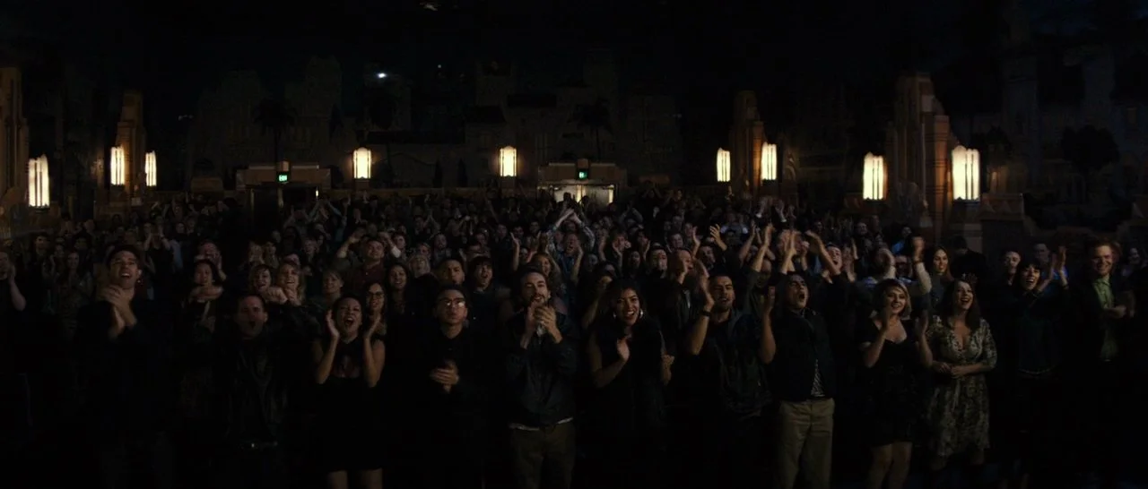 They go inside, where the rest of the cast and crew await them, and prepare for the big premiere.