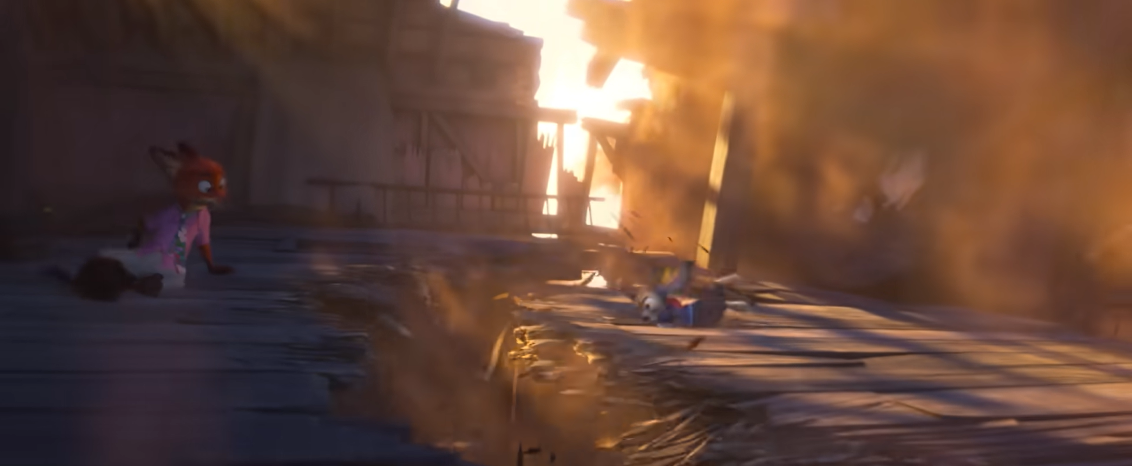 As the ZPD barges in, the lodge splits apart, and Judy and Nick are separated to either side of the falling floors. Judy is rescued by Gary and Pawbert, while Nick gets captured by the ZPD.