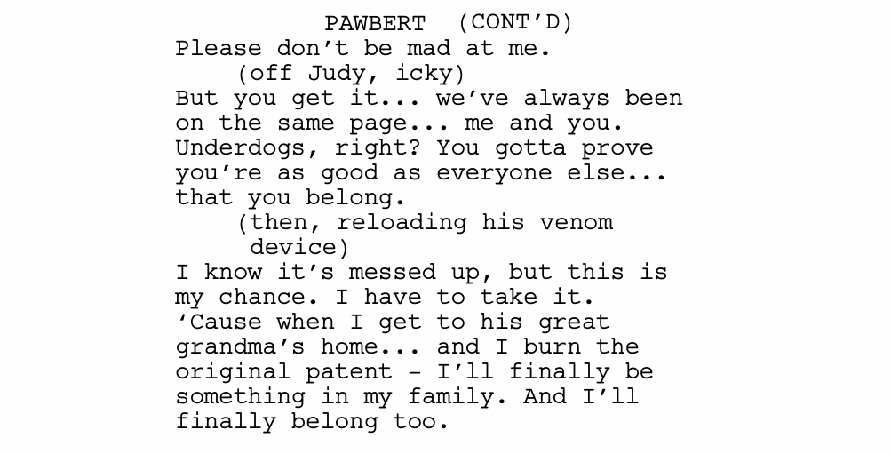 But then, Pawbert reveals who he truly is. He throws Gary out into the cold, and injects Judy with snake venom. He is trying to get to the patent himself, so he can prove to the Lynxley family that he is a worthy son.