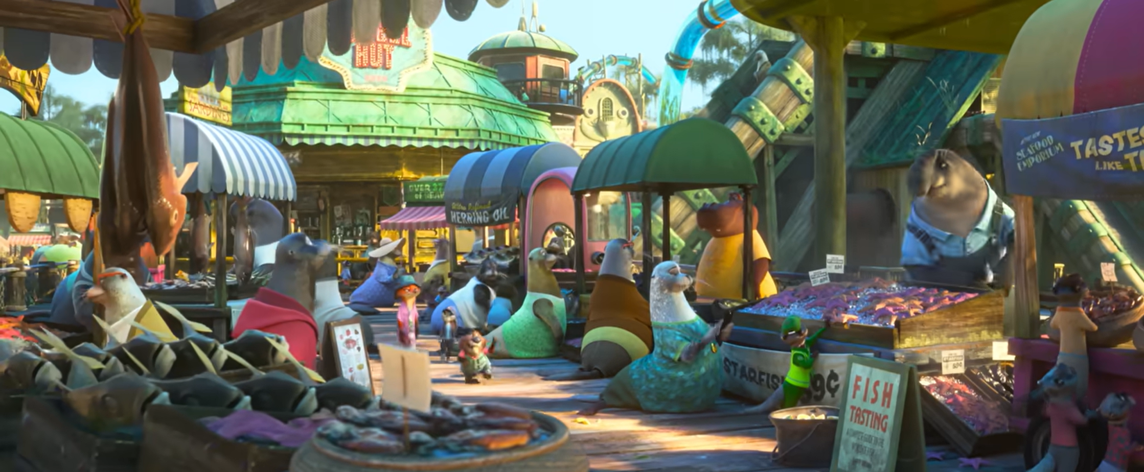 At the ZPD, we see a classic Chief-Bogo-assigns-tasks scene reminiscent of the first film. Judy and Nick have gone undercovering at the city shipyard, without waiting for Bogo’s orders.